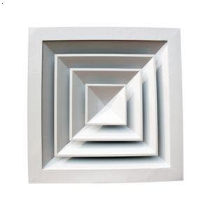 方形散流器是空調(diào)或通風(fēng)的送風(fēng)口,就是讓出風(fēng)口出風(fēng)方向分成多向流動(dòng),一般用在大廳等大面積地方的送風(fēng)口設(shè)置,以便新風(fēng)分布均勻。